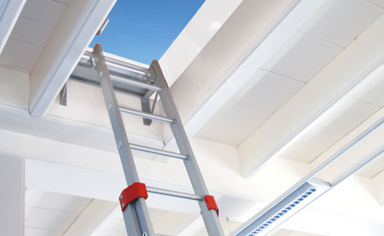 مع مجموعة معتمدة من Gorter TÜV NORD، لديك حل كامل للوصول إلى السطح من الطابق العلوي للمبنى. تتكون المجموعة من فتحة سقف مع السلم المقصّي أو السلم الثابت أو السلم المتنقل المناسب.